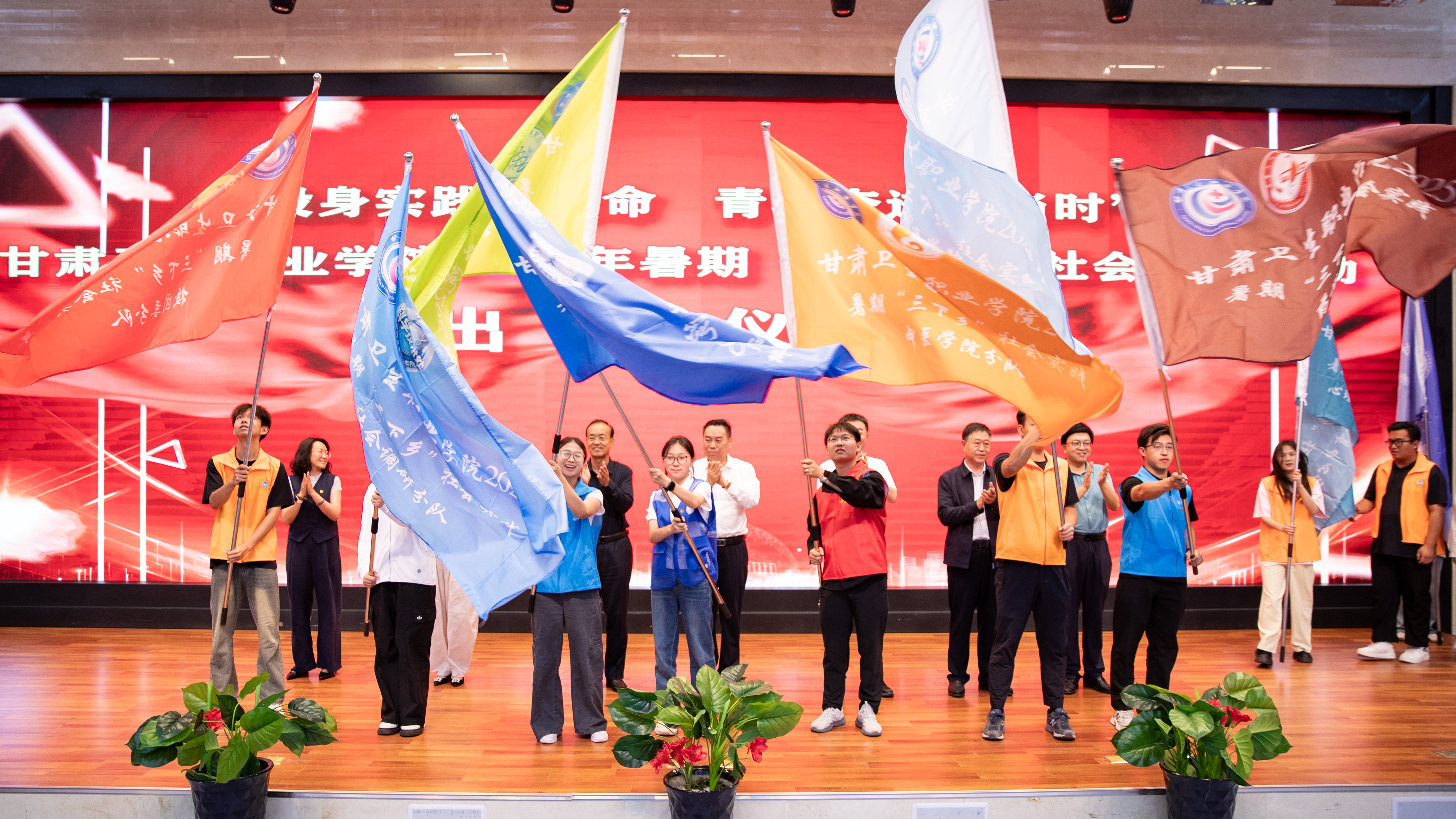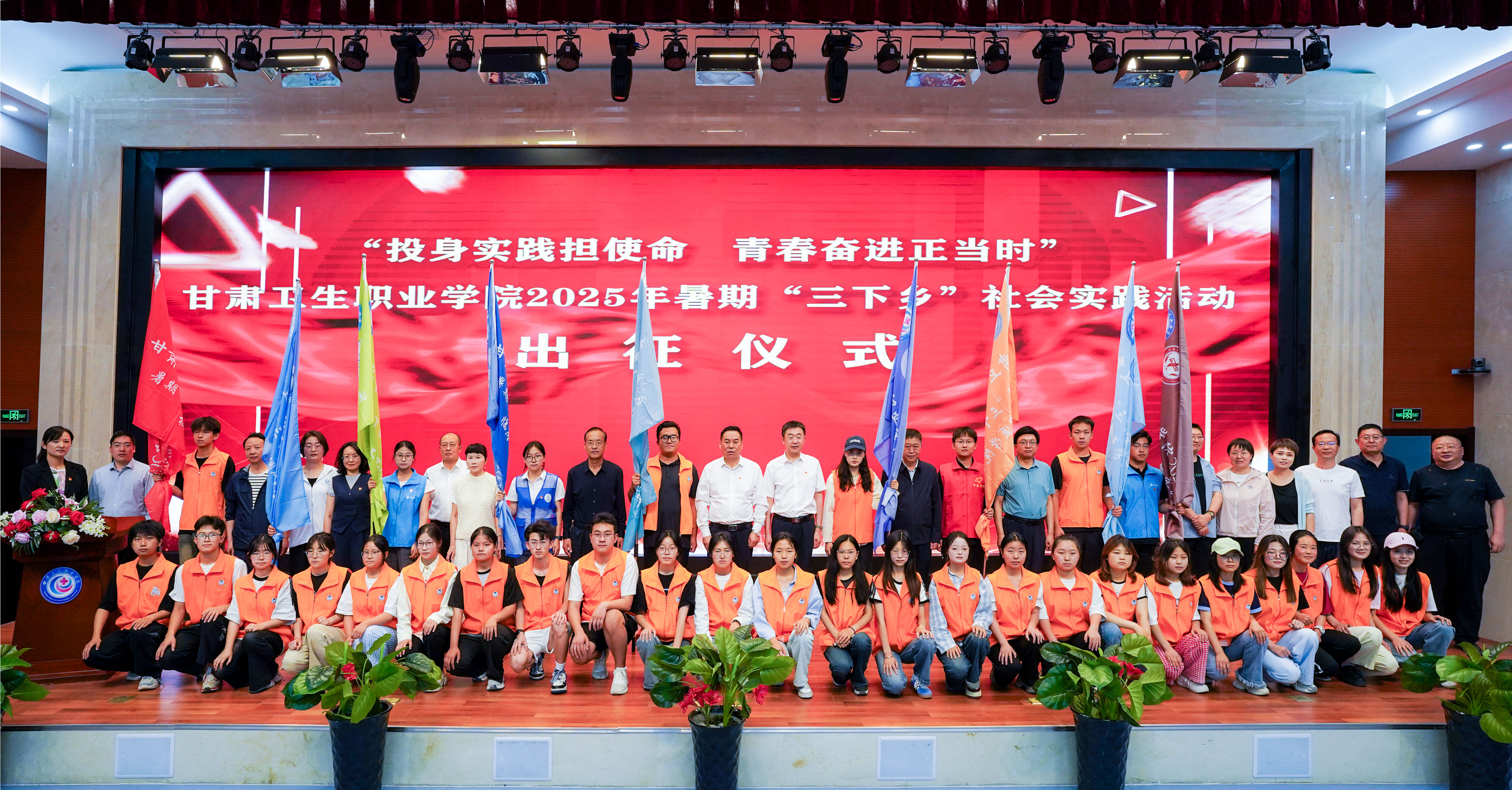 出征仪式上,校领导为各实践分队授予了象征着责任与使命的队旗。志愿者接过队旗后,包磊书记宣布:365英国上市集团官网2025年大学生志愿者暑期文化科技卫生“三下乡”社会实践活动8支分队251名志愿者集结完毕,准备出征!