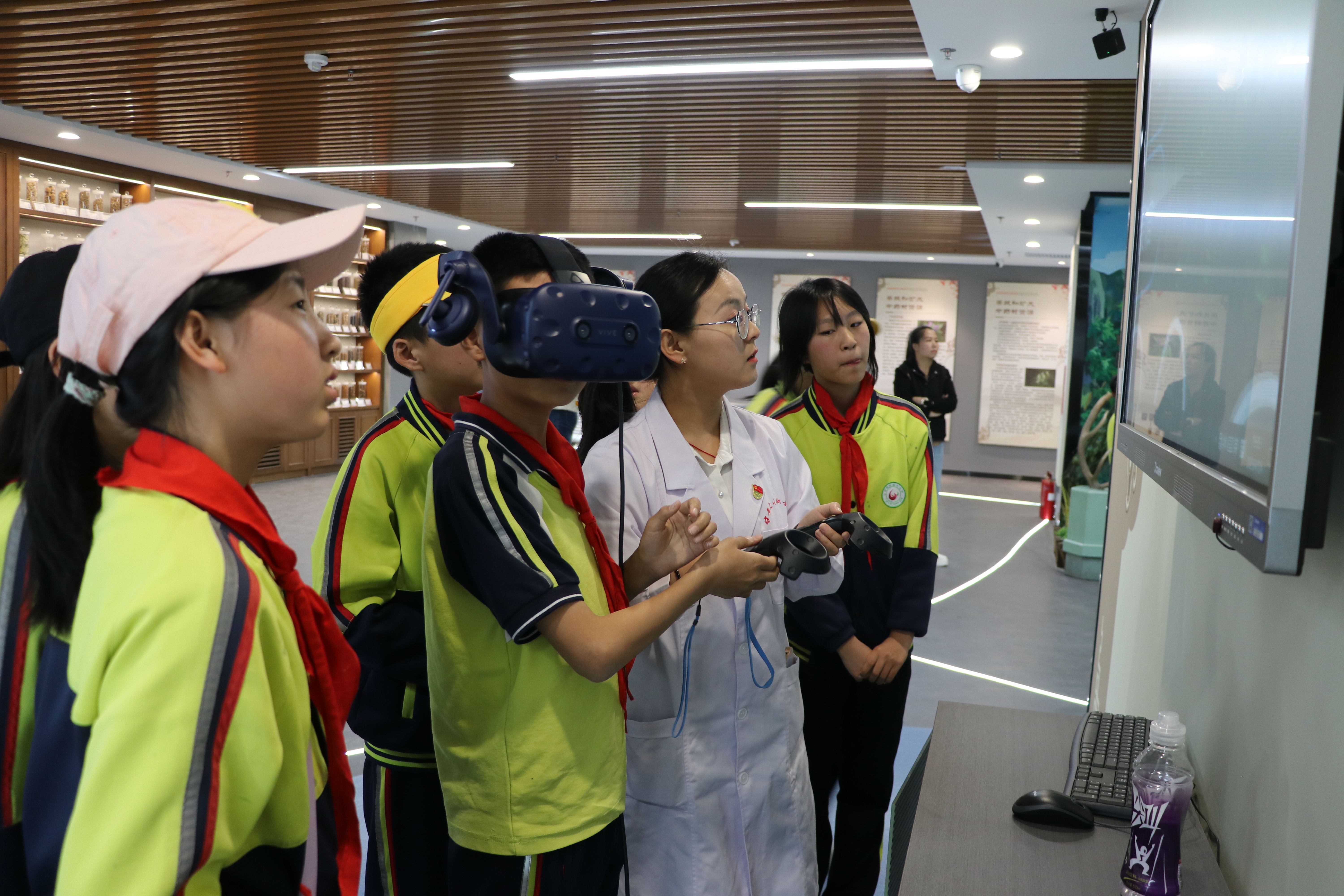 首先,药学院组织兰州新区第六小学师生和家长们参观了中医药文化博物馆。在不同展区,学生们学习了中医药相关文化知识,参观了形态各异、气味独特的各类药材,精致的药碾子,小巧的戥秤等传统中药炮制加工和调剂工具,让学生们对中医的智慧和技艺有了更直观的认识。同时,孩子们通过各种VR场景,切身体验了采药、切片、炮制的奇妙和乐趣。