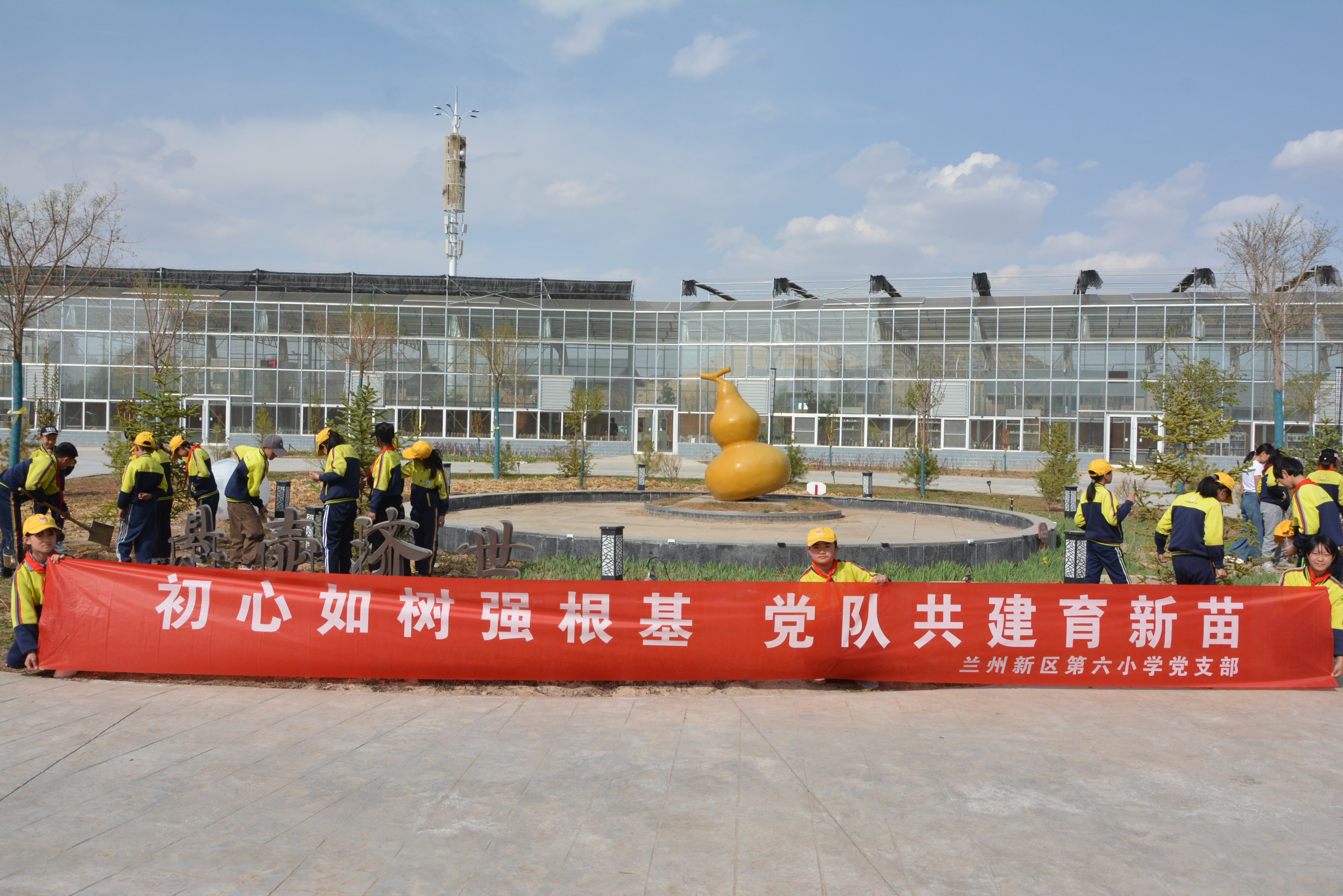 最后,药学院与兰州新区第六小学师生代表在“百药园”共同栽种象征校院友谊与发展的树苗,双方约定,未来将共同养护树苗,定期开展“树木生长观察”“药用植物科普”等活动,让友谊之树与合作之花在党建引领下茁壮成长。