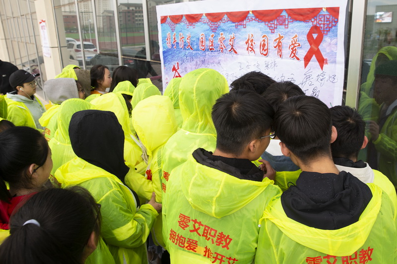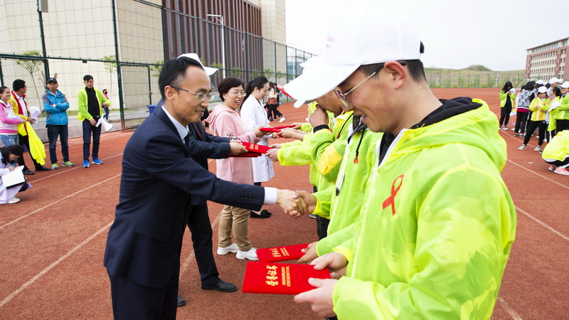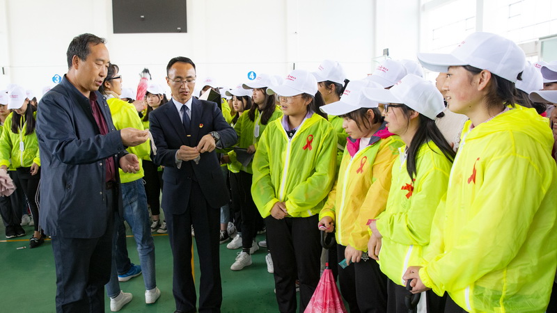 本次活动共有3个专业400余名学生参加,首先杜俊艳给同学们讲解了有关艾滋病的传播途径及避孕套的正确使用方法,全体学生在签字墙签字。接着,在操场举行了400米短跑、8×100米接力,同学们热情高涨,参与度很高。最后,为鼓励同学们的积极参与,出席活动的领导为获奖同学颁奖,所有参与该活动的同学也都获得了参与奖。兰州新区疾控中心贾崇清主任、王琴副主任还给同学们送来了200个遮阳帽和部分预防艾滋病物品表示关怀和慰问。