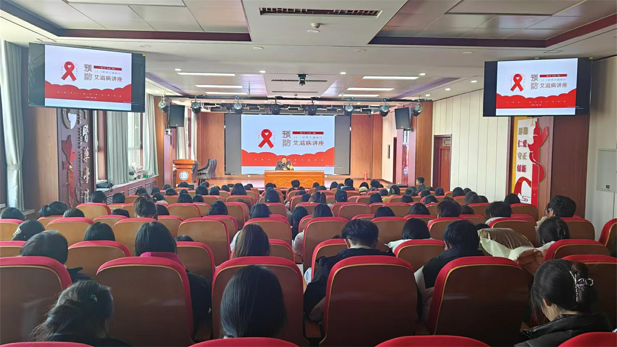 在第37个“世界艾滋病日”来临之际,为进一步宣传和普及艾滋病防治知识,提升学生自我保护能力,营造全民广泛参与艾滋病防治工作的良好氛围,11月26日下午,药学院在6号楼一楼学术报告厅开展了2024年世界艾滋病日宣传活动。
