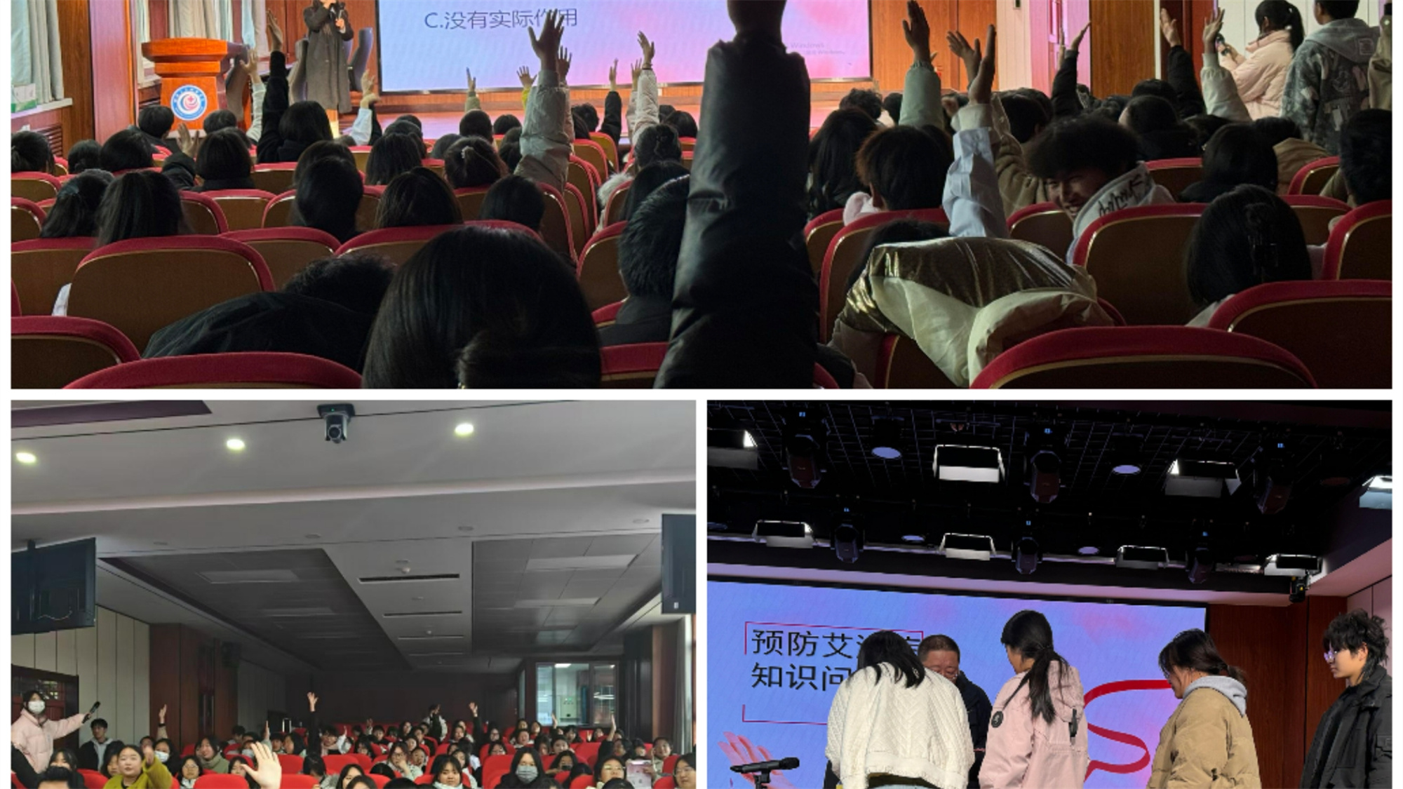 除讲座外,为鼓励现场学生积极参与,增加活动的趣味性,还设置了有奖问答环节,共20道关于艾滋病预防的题目,回答正确者现场就可收获一份精美礼品。