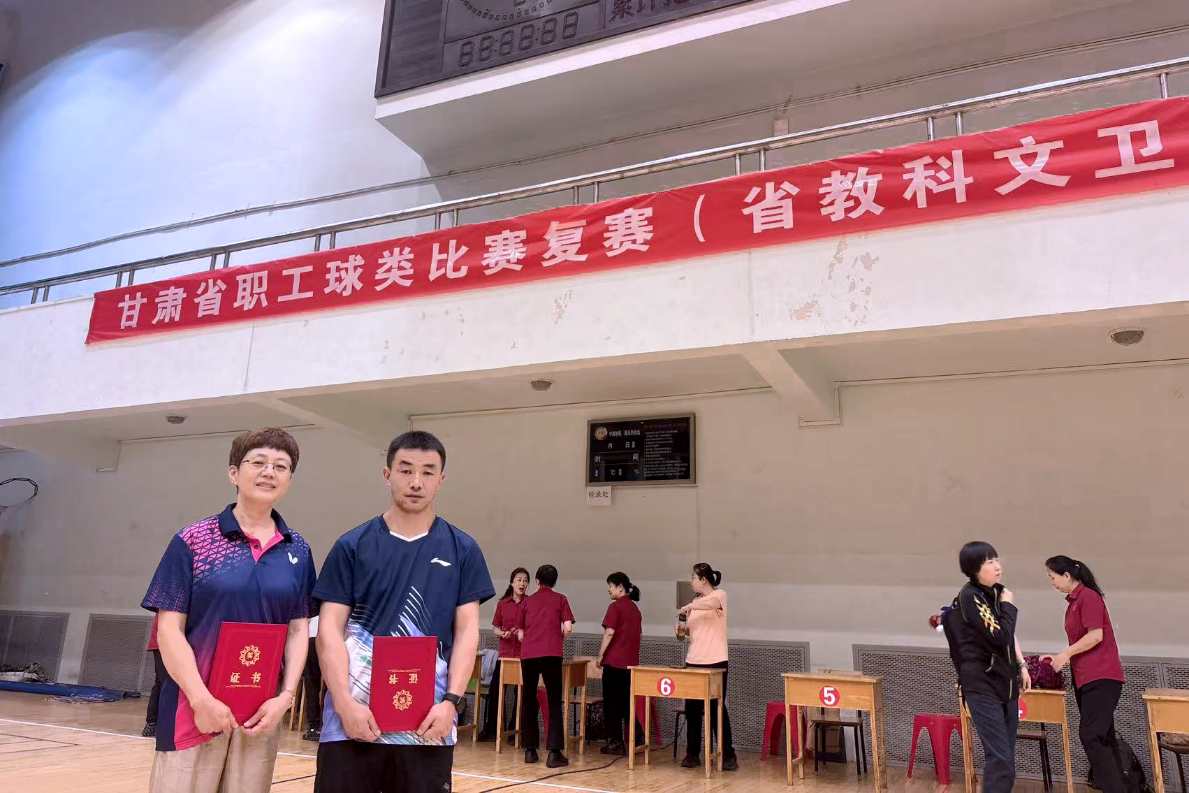 近日,“庆工运百年 展陇工风采”甘肃省职工球类比赛教科文卫赛区比赛顺利举办。学校积极响应赛事号召,组建代表队参加了乒乓球和羽毛球两个赛项的角逐。其中,马嵘老师和陈玄清老师组成的女双组合荣获羽毛球项目三等奖;郭艳春老师和李强老师组成的混双组合荣获乒乓球项目三等奖。