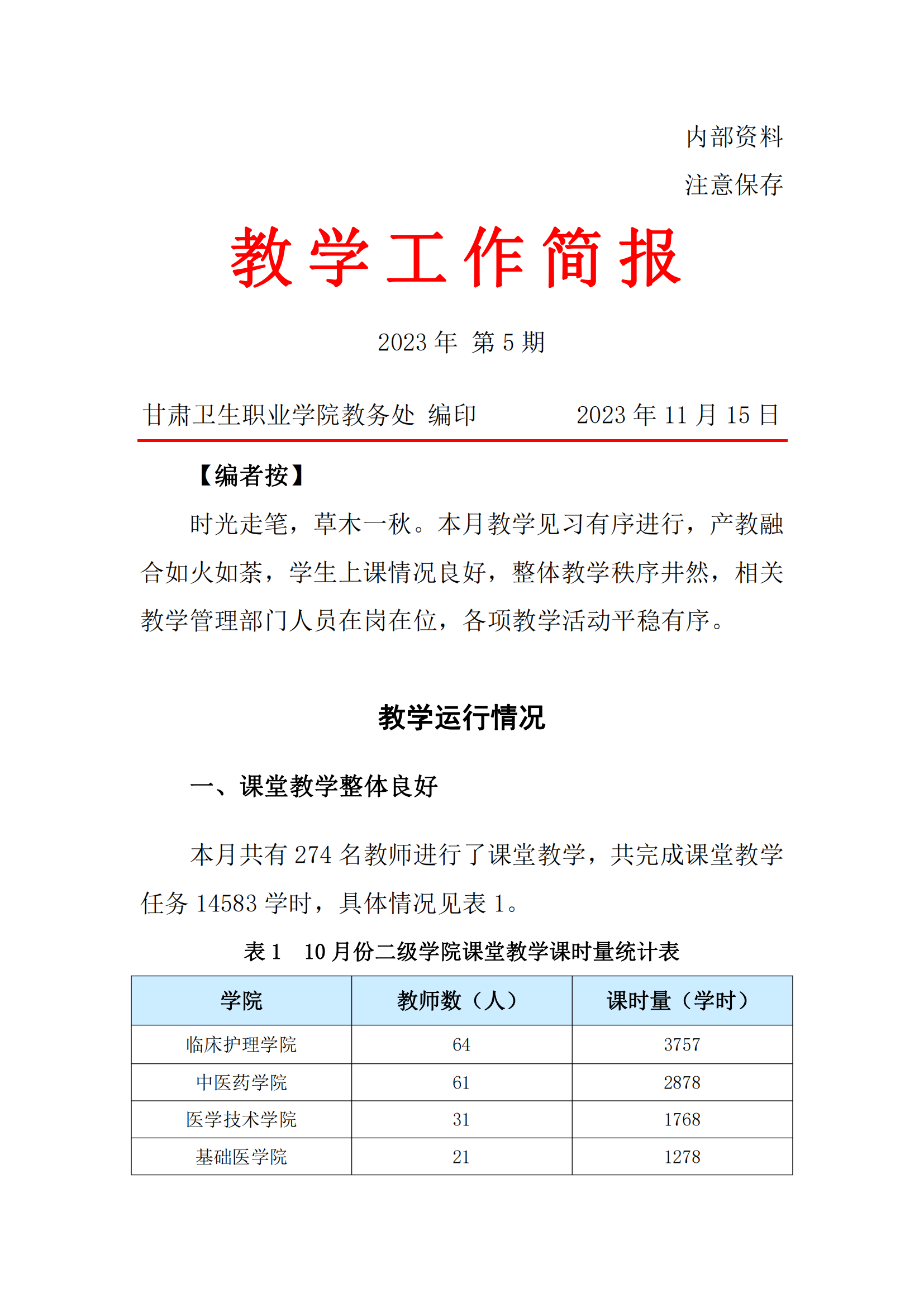 2023年10月份教学工作简报