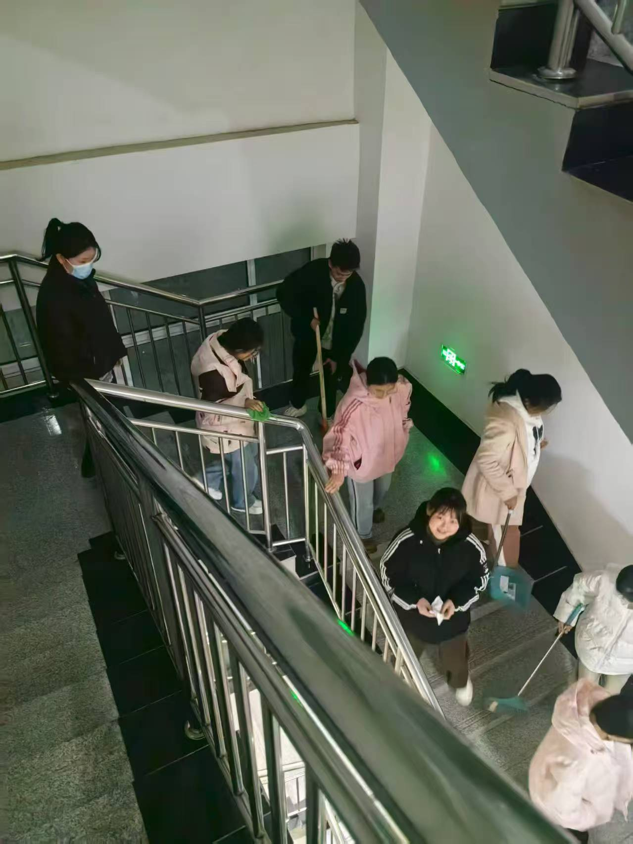 同时,护理学院学生掀起了一股实践热潮。学院团委实践部积极发挥带头作用,组织40 余名志愿者开展了校园环境美化行动,对学校门口、教学楼楼道等地进行垃圾捡拾,并认真进行分类处理,以实际行动积极践行环保理念。各班级学生自发行动起来,对教室、走廊以及周边区域进行了全面细致的清扫,为营造良好的学习环境贡献力量。
