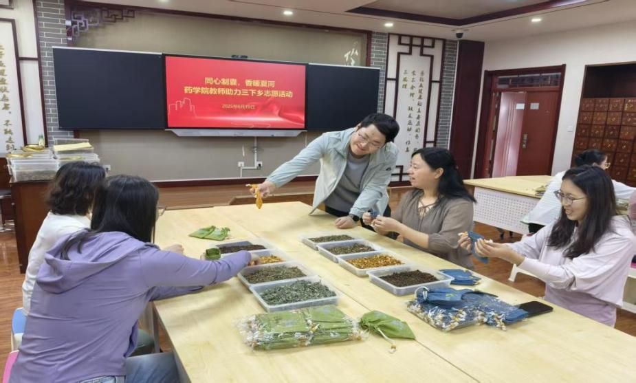 为传承中医药文化,丰富教职工实践体验,6 月 10 日下午,药学院在岐黄楼中药调剂室举办 “同心制囊,香暖夏河” 香袋制作志愿活动,教职工以亲手制作的香囊为载体,为学校“三下乡” 文化传播活动增添色彩。