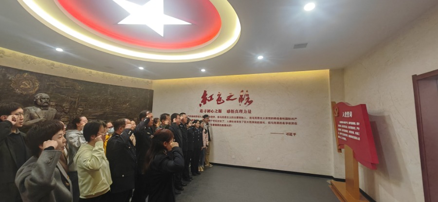 交流学习后,全体党员庄重的重温入党誓词。随后,张所长一行参观了马院红色文化教育实践基地,并对学校优越的办学条件和以学生为中心的育人成效给予充分肯定。