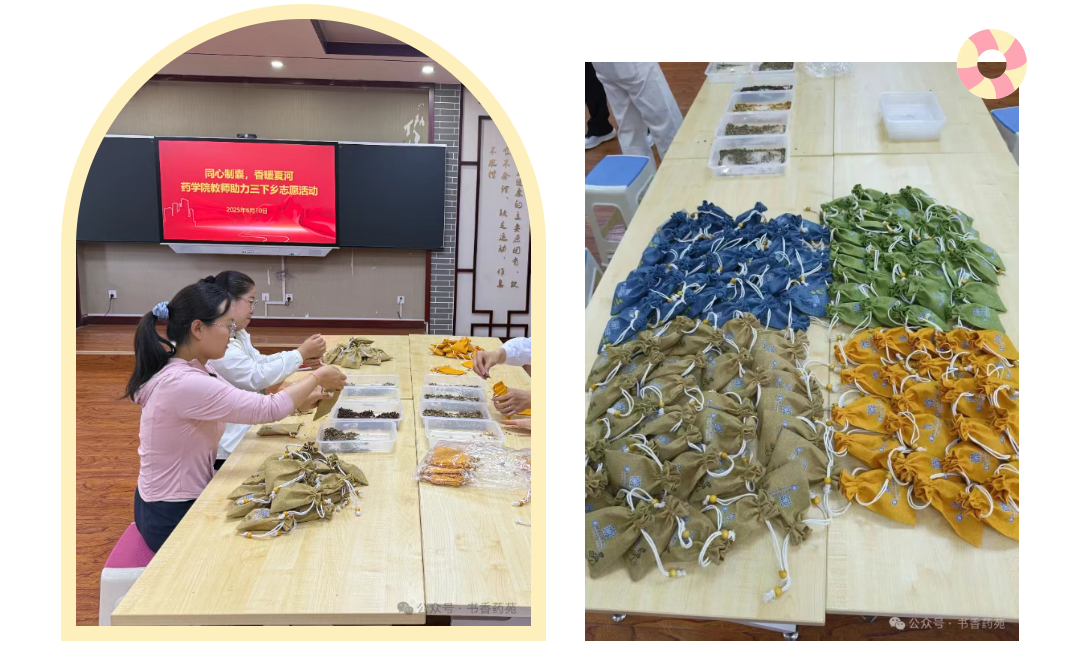 药学院在岐黄楼中药调剂室举办 “同心制囊,香暖夏河” 香袋制作志愿活动,教职工以亲手制作的香囊为载体,为学校“三下乡” 文化传播活动增添色彩。