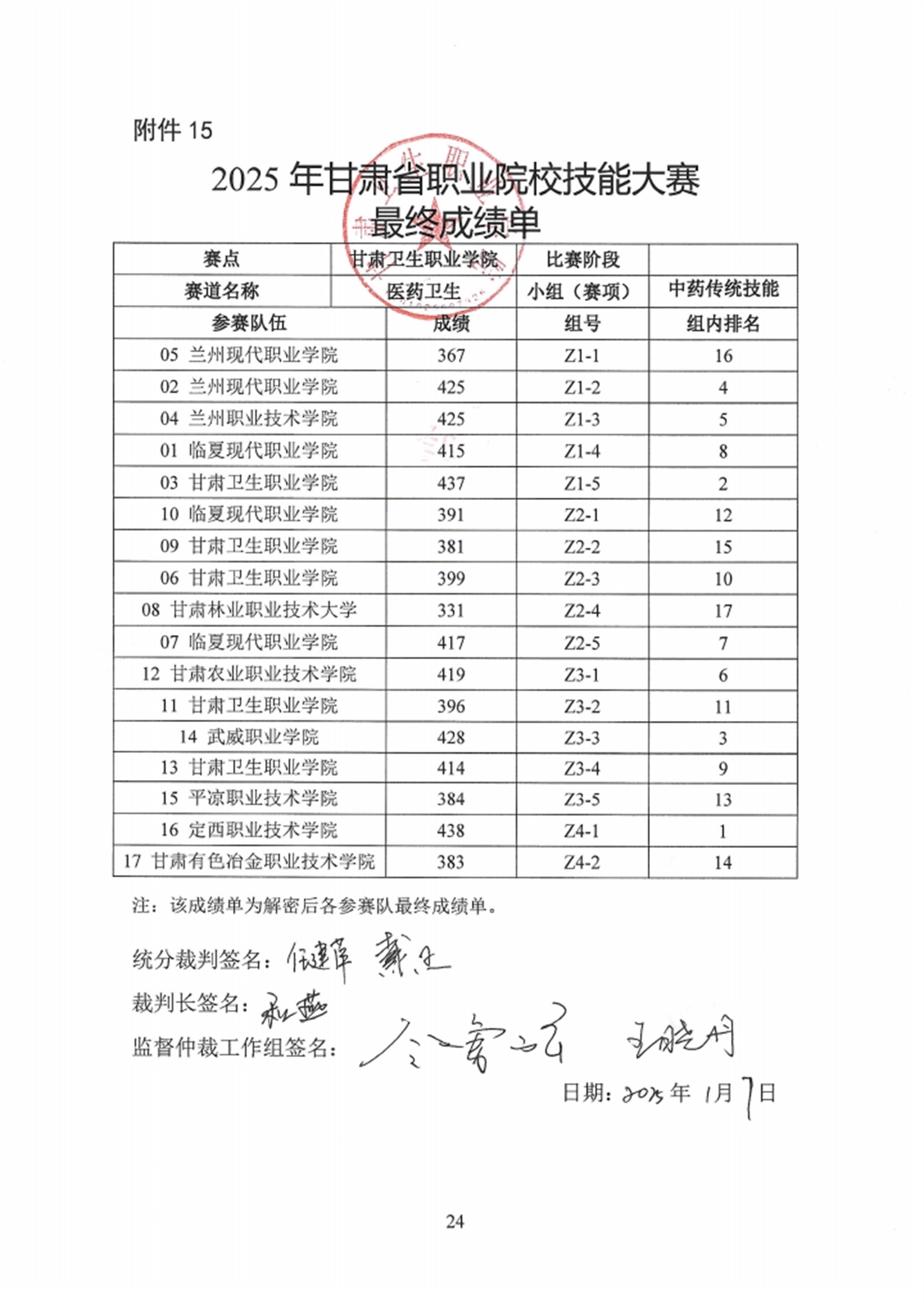 2025年甘肃省职业院校技能大赛365英国上市集团官网赛点中药传统技能赛项成绩公示