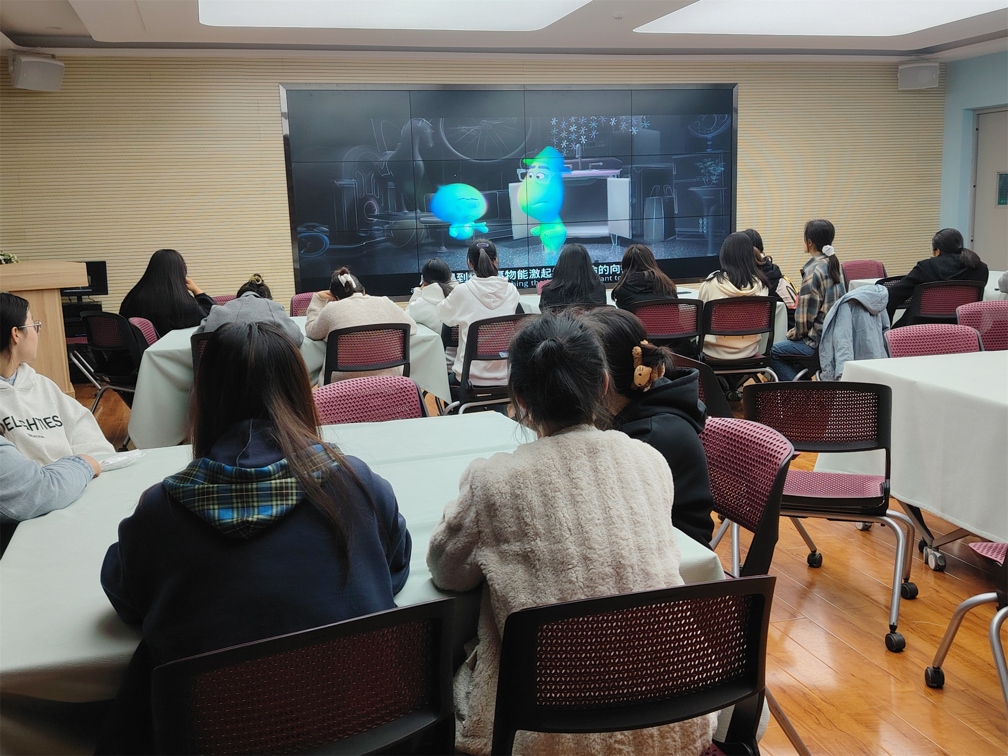 此次电影赏析活动选取《初恋那件小事》《心灵奇旅》两部影片,分学院组织观影,由心理健康教育中心学生朋辈辅导员团队主持,中心全体教师指导。活动现场,学生朋辈辅导员带领同学们从心理视角赏析电影,走进片中人物的内心世界,感受角色的心灵言语,在他人的故事中解读自己的生命体验。最后,朋辈辅导员与学生们就观影感悟进行了交流互动,倾听同学们的心灵感触,答疑解惑,让参与的同学体验更加深刻,收获更为丰富。