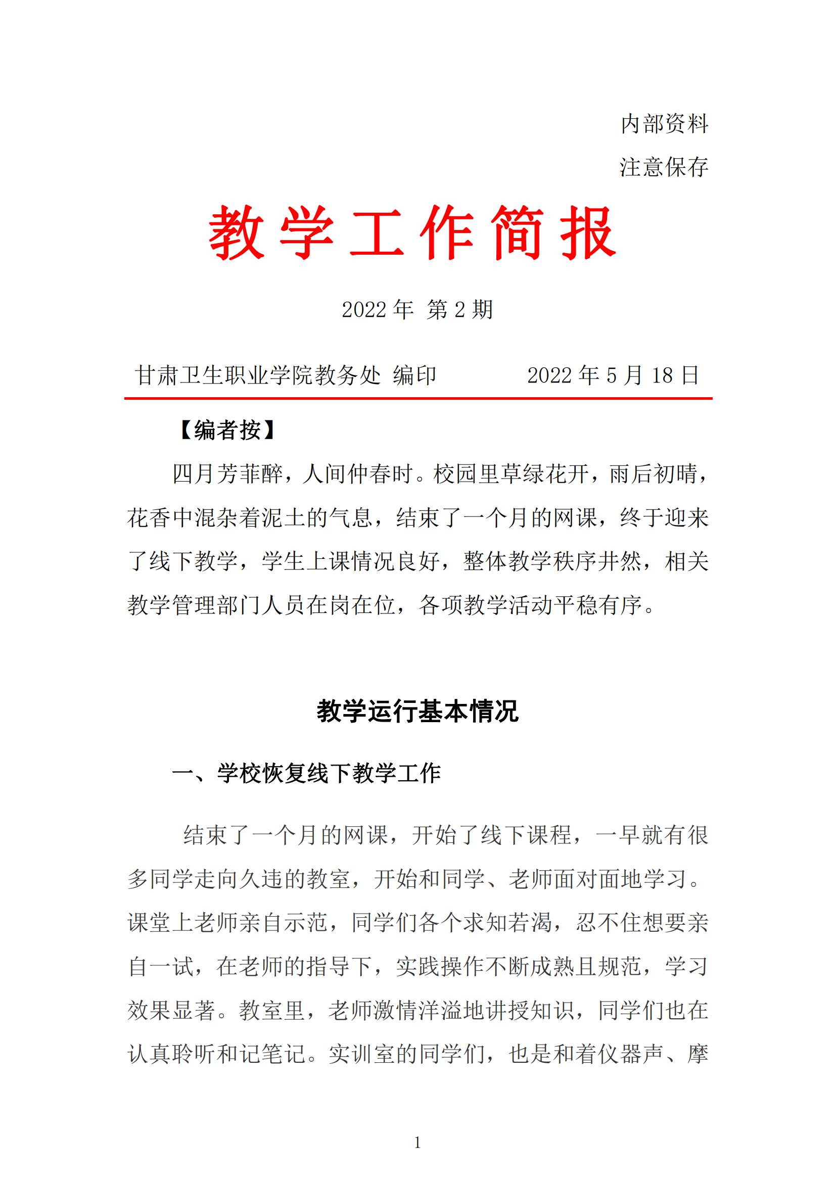2022年4月份教学工作简报