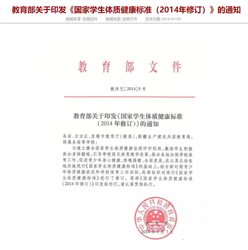 国家学生体质健康标准(2014年修订)