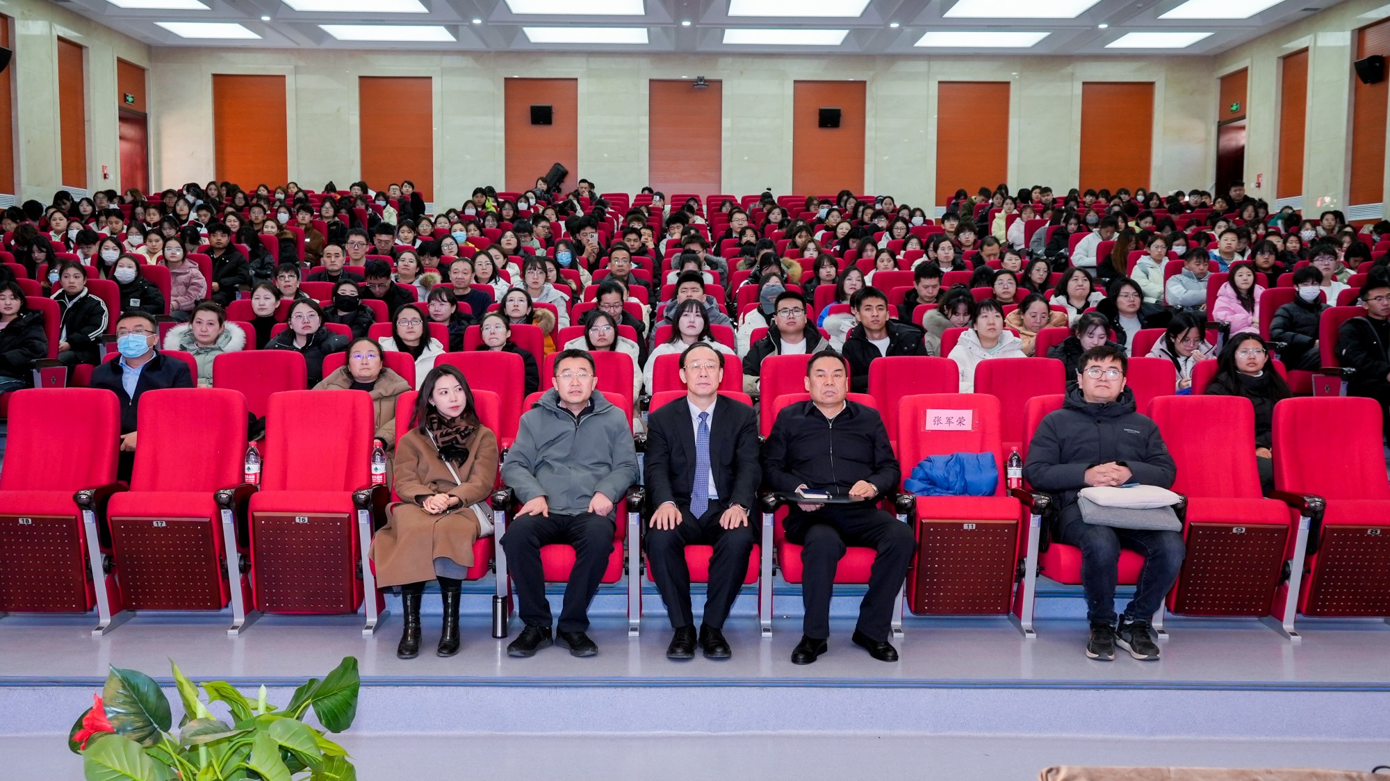 12月31日,学校科技讲坛“院士进校园 博导入课堂”系列学术活动第二十六场讲座在笃学楼多功能报告厅圆满举行。本次讲座特邀兰州大学萃英二级教授、主任医师、博士研究生导师、英国剑桥大学访问学者李玉民教授,为365英国上市集团官网师生带来了一场以“厚德精医树人 博学笃行育才”为主题的学术盛宴。学校包磊书记、王建成校长、张军荣副校长及中青年教科研骨干教师、学生代表等400余人参加了此次讲座,活动由副校长张军荣主持。