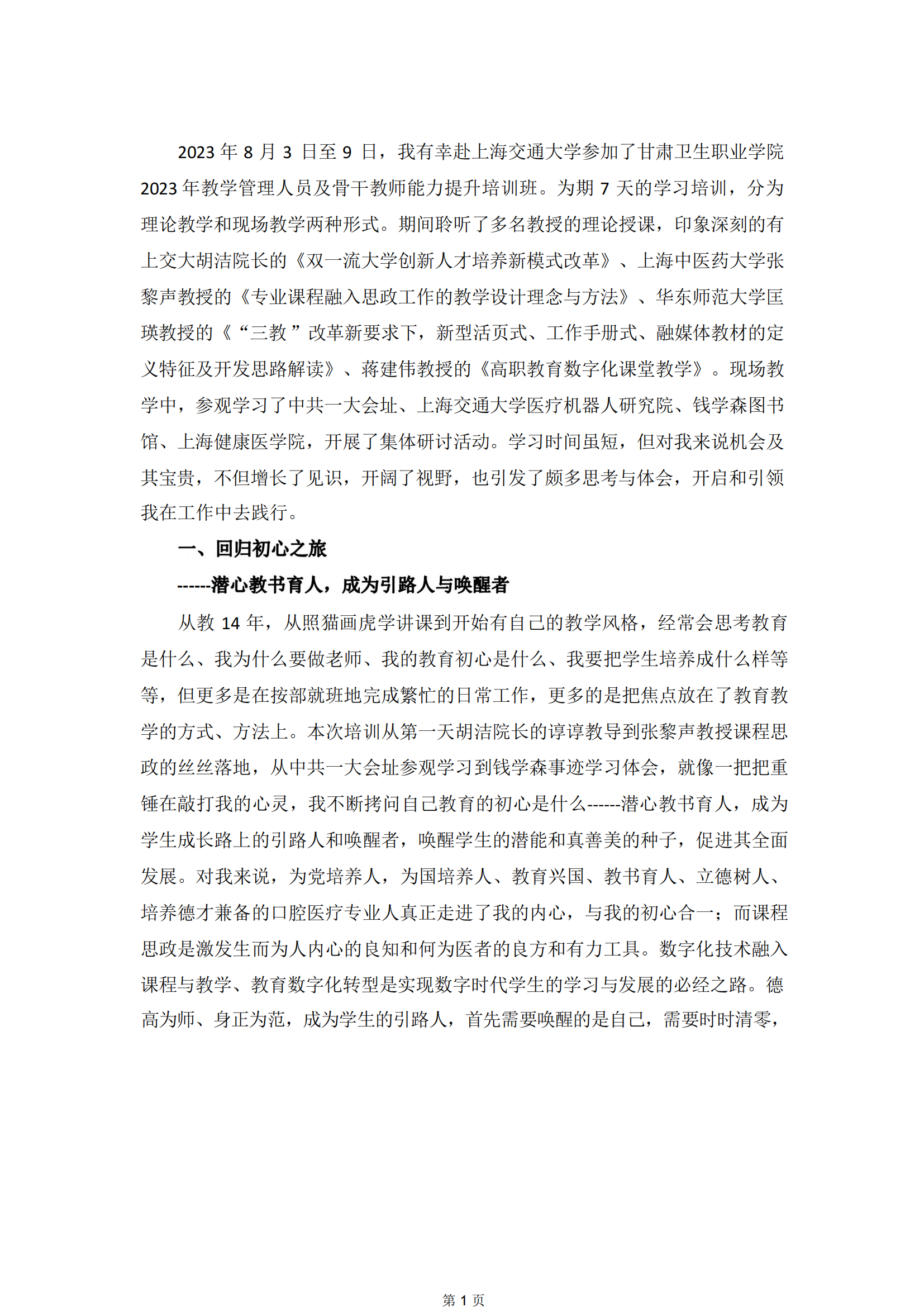 【上海交通大学培训心得】罗亚莉:回归初心之旅、提高认知之行