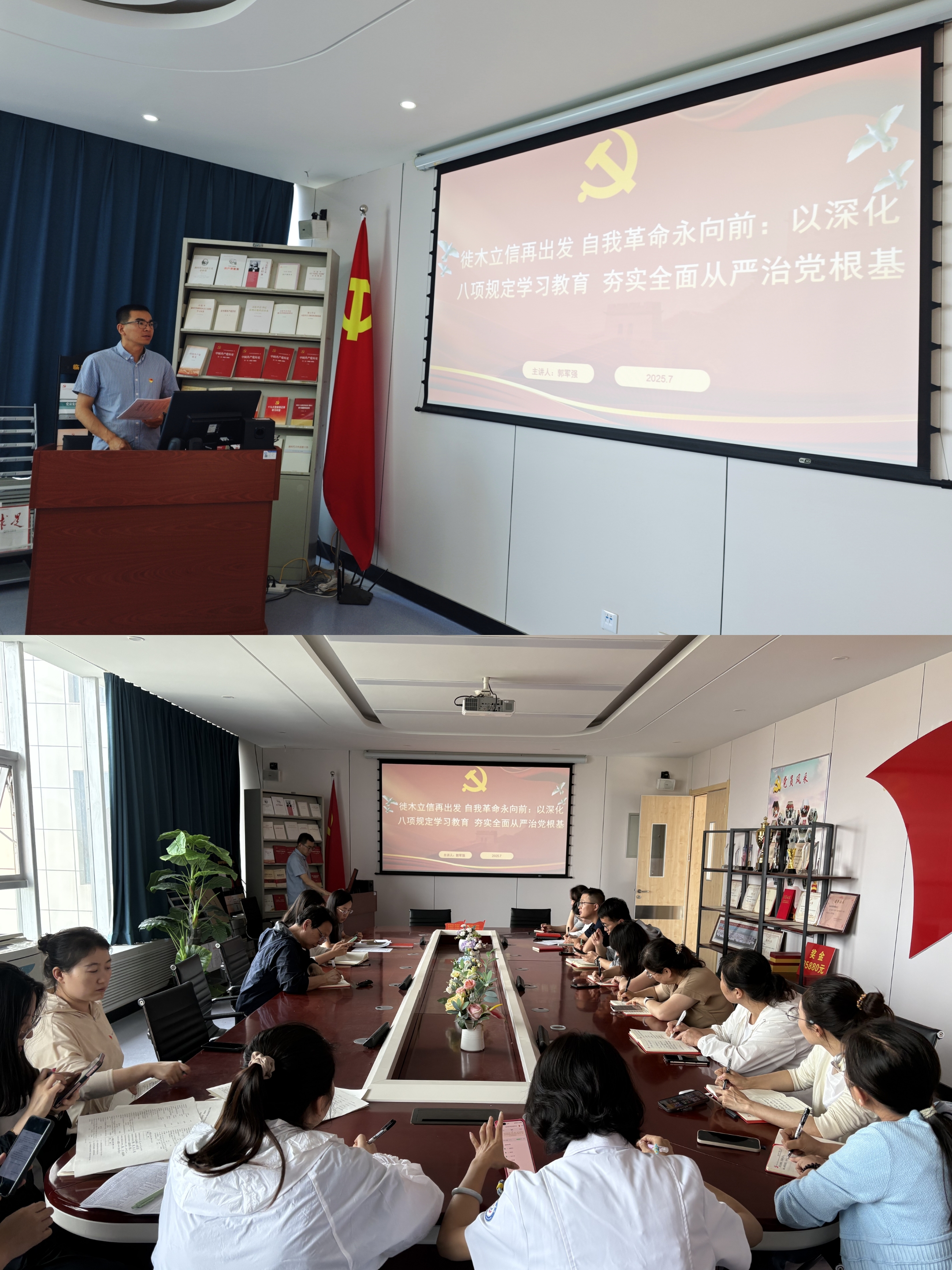 为庆祝中国共产党成立104周年,2025年7月1日,临床医学院党总支召开“七一”专题党课暨学期党建工作总结会,深入学习贯彻习近平总书记关于全面从严治党的重要讲话精神,聚焦“深化作风建设,推进自我革命”主题开展学习教育。会议由教师党支部书记郑婷主持,全体教师党员参会。