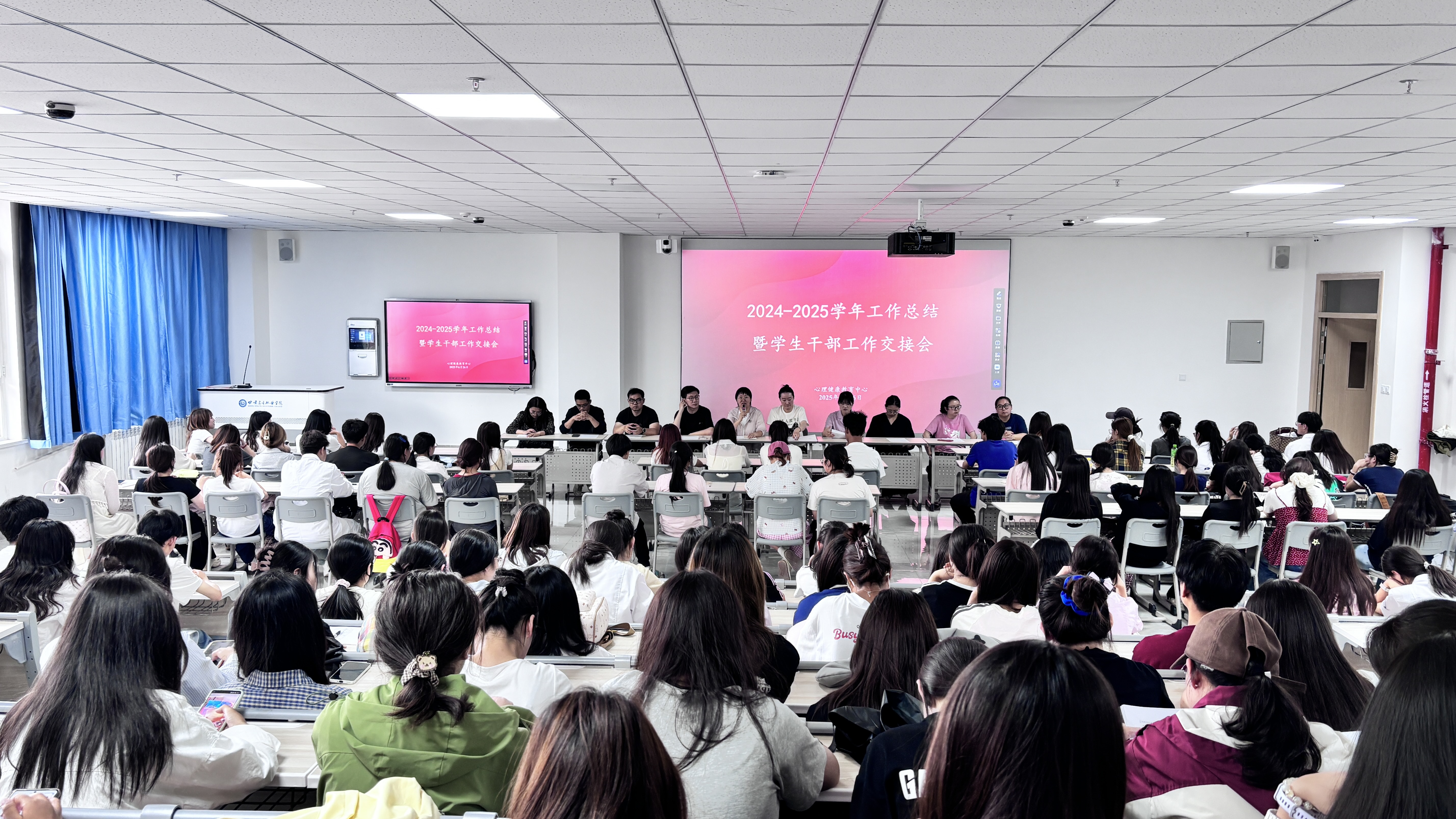 会上,心理健康教育中心全面回顾了本学期工作,向全体同学的辛勤付出致以诚挚谢意。随后,公布了新任干部负责人名单,对心理干部工作提出要求,鼓励他们发挥桥梁纽带作用,提升服务意识与专业素养,以爱心与热忱服务师生,筑牢心理健康防线。两届心理干部代表先后发言,即将离校的心理干部们倾囊相授工作经验与心得,新一届干部满怀热情承诺将传承优良传统,展现出薪火相传的责任担当。