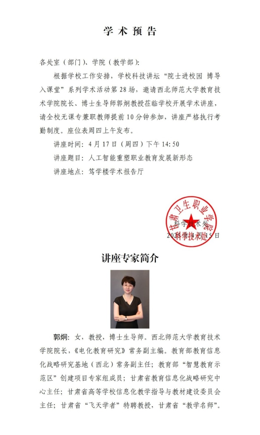 【院士进校园 博导入课堂】学术讲座通知