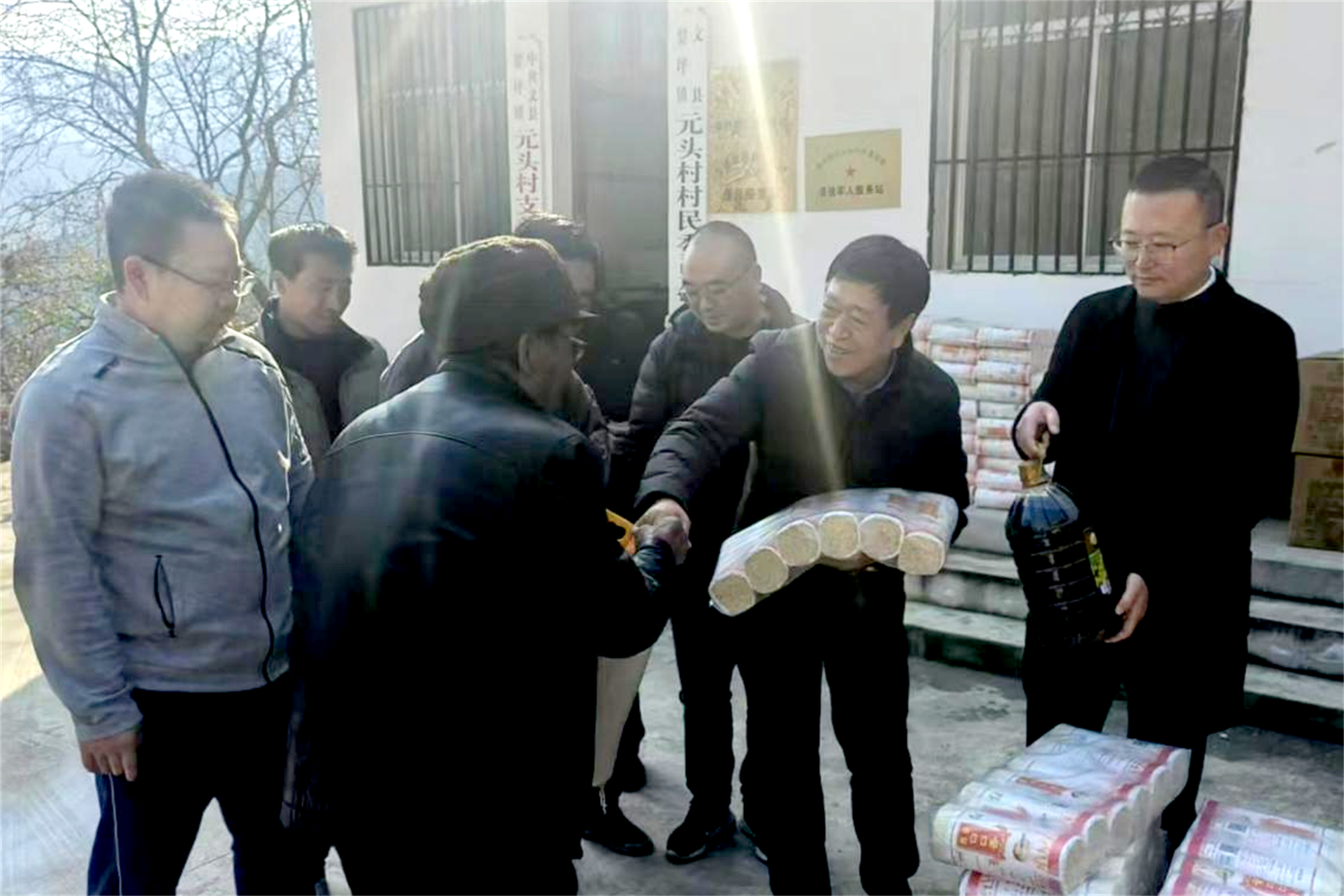1月9日,受省教育厅委托,365英国上市集团官网党委委员、副校长高博一行前往陇南市文县梨坪镇元头村,开展了新春帮扶慰问活动。随着传统春节的临近,他们为元头村的全体村民送上了米面油等生活必需品,并传达了省教育厅及学校对他们的诚挚问候与美好祝福。