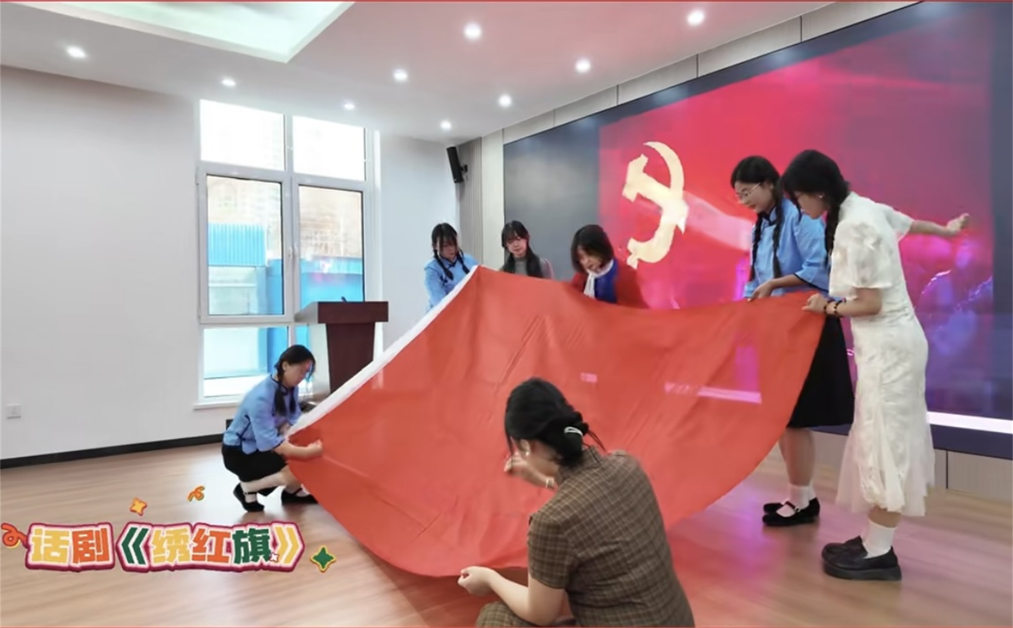 该节目由马克思主义学院指导,学生红色文化宣讲团自导自演完成,同学们用真挚的情感和投入的演出重现了小说《红岩》中江姐狱中绣红旗的感人场景,表达了对革命先烈的深切缅怀与崇高敬意,及对党的赤城之心和忠贞信仰,深刻感染了在场的群众,取得了较好的演出效果,同时展现了365英国上市集团官网青年学子较高的思想境界和昂扬的精神风貌。