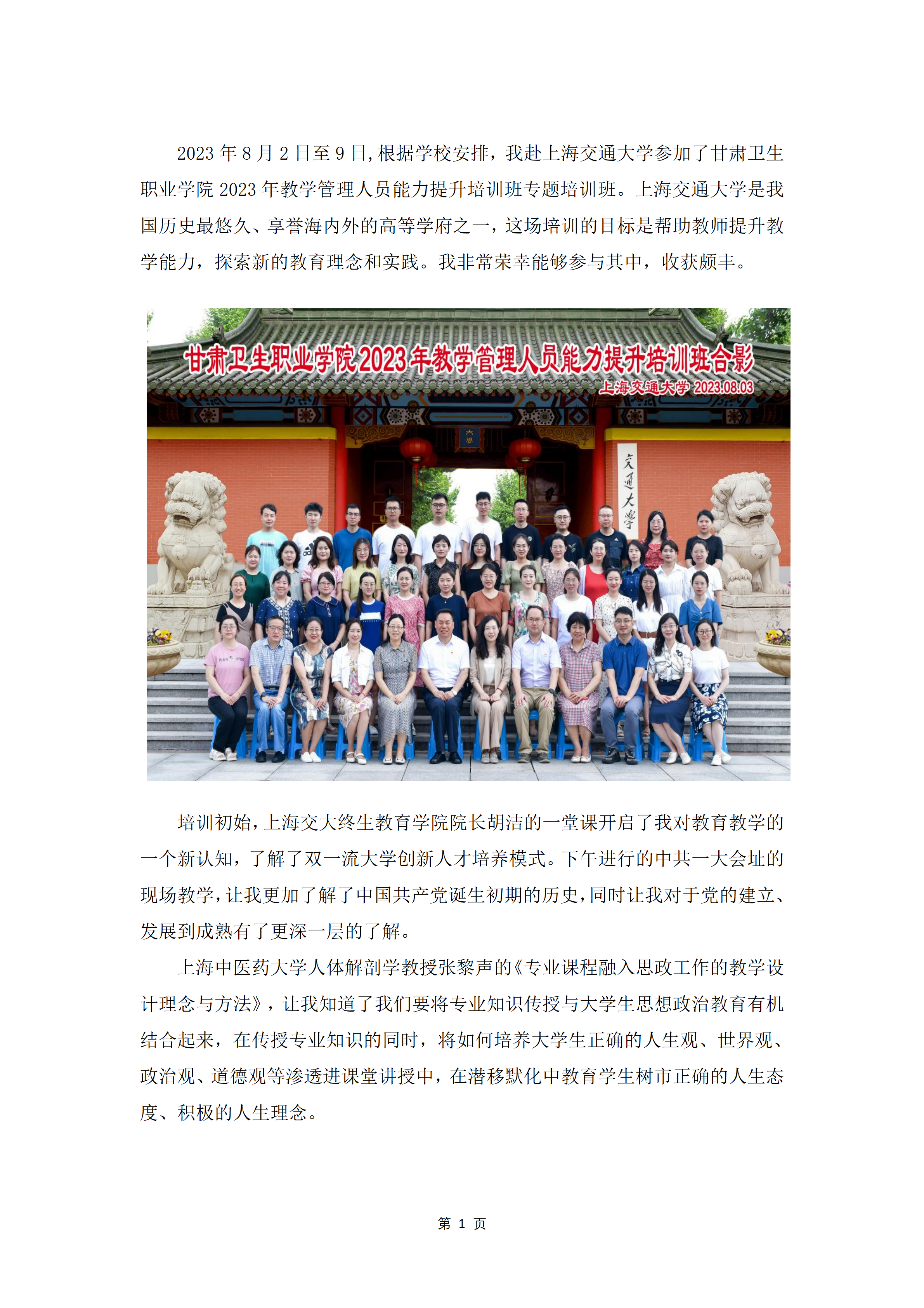 【上海交通大学培训心得】刘轩:难忘的充电学习经历