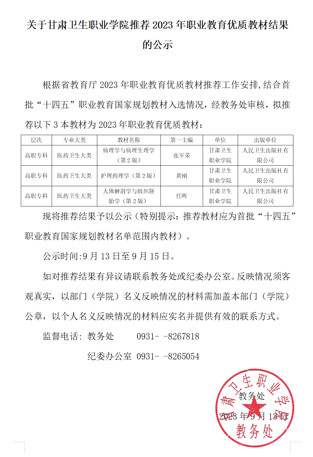 关于365英国上市集团官网推荐2023年职业教育优质教材结果的公示发布时间:2023-09-12 -