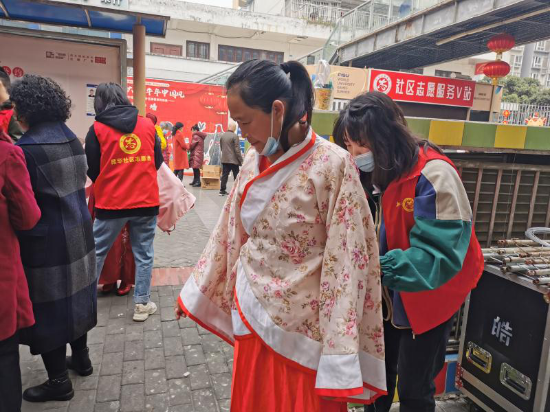 贺诗瑶,来自食品学院普本1905团支部。于2021年2月9日在四川省成都市高新区桂溪街道办参与桂溪街道大源片区开展的2021年“盛装过大年·牛年中国风”新春系列活动。她的主要工作是引导参加活动的人们换上汉服去相应地点拍照打卡,以及汉服的整理工作。她感慨道:“送人玫瑰,手留余香,在帮忙别人的同时自我真的能够感受到一种幸福的感觉。进取地投入、热情地参与、耐心地引导、不厌其烦地解释说明,即使棘手的问题都能够迎刃而解!奉献真的带给了我许多欢乐,让我感觉到了自我的存在与存在的意义。在未来,我会更多的去帮忙他人,做更的志愿服务活动,它会让我的生活更有意义,更有价值。”