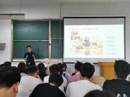 首先粮储系主任舒在习向同学们介绍了粮储的行业背景、有关粮储的企业、粮储系的教师团队和就业方向。他表示粮食储备在国家发展战略上占有重要地位,提到了国务院总理李克强多次强调“保障粮食安全事关国家安全和发展大局”,发出“广积粮、积好粮、好积粮”的号召;然后油脂系主任齐玉堂向同学们介绍了国内外油脂的资源和技术分布、油脂的制取、蛋白质资源开发、脂质改性、油脂化工、油料开发等。从资源开发层面向同学们展示了广阔的发展前景;接着食工系主任易阳向同学们介绍了食品的设计、加工、包装、保藏。描绘了未来食品与人工智能相结合的高端发展,同时鼓励学生们成为“懂产品、懂技术、懂工程、懂大局”的食品人。最后做宣讲介绍的是粮工系主任刘刚,他向同学们介绍了粮工的悠久历史、世界500强的就业单位以及包括丁文平教授在内的强大的教师学者团队。