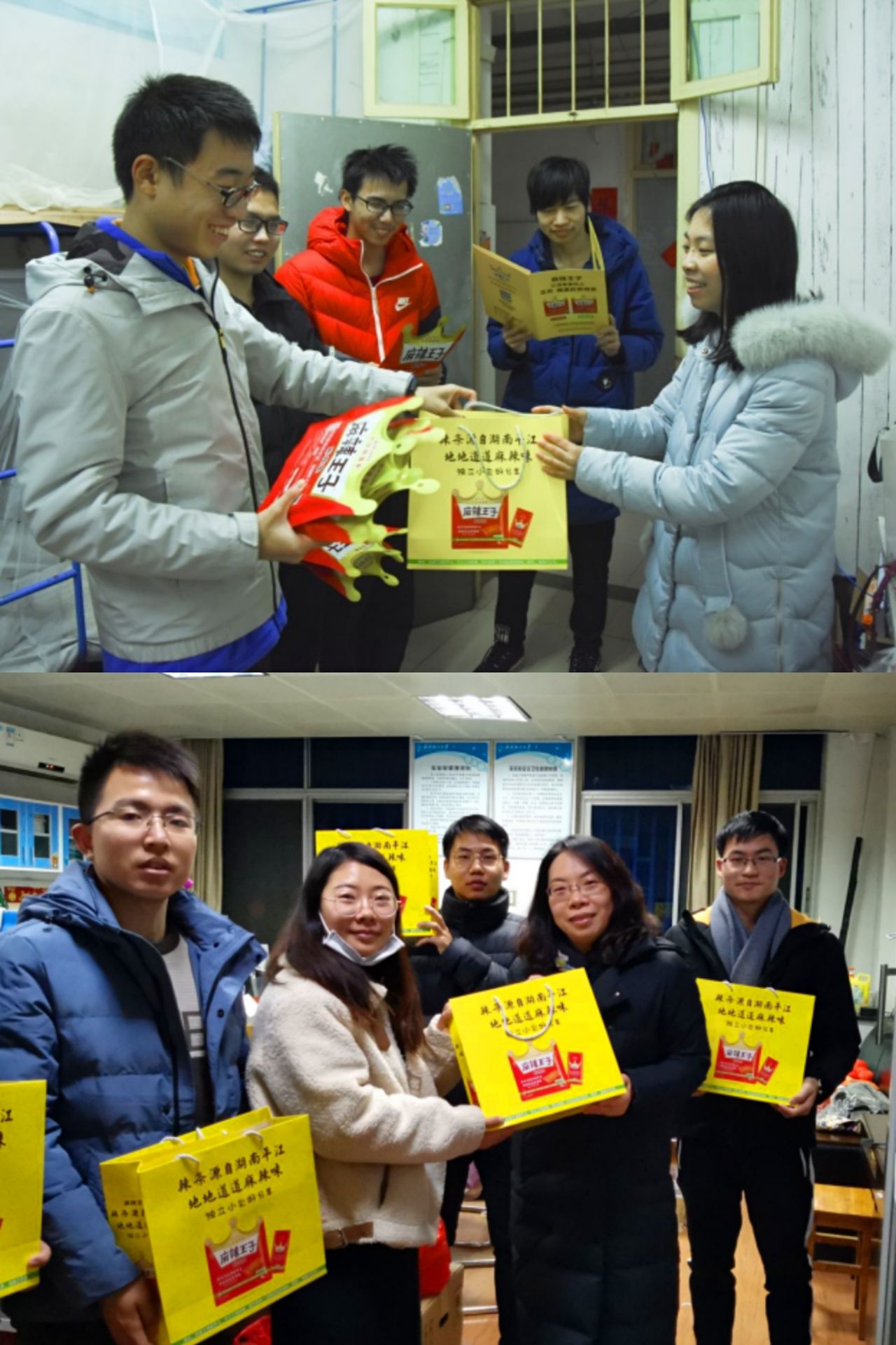 1月6日上午9点,我校荣誉校友,“李庆龙·柯惠玲奖助基金”第一届理事会理事长,湖南省玉峰食品实业有限公司董事长张玉东先生委托企业负责人向我校食品学院师生送来了新年的问候与祝福,并将“麻辣王子”系列产品分发给老师和同学们品尝。