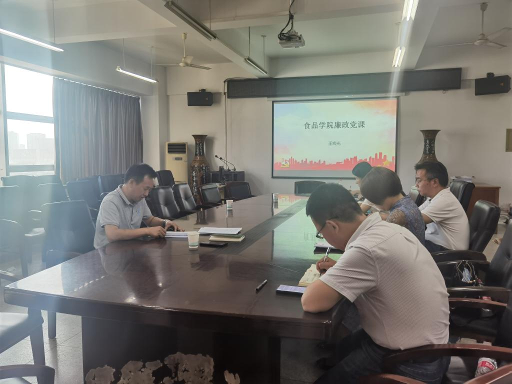 根据学校2022年党风廉政宣教月活动统一部署和要求,9月15日下午,食品学院在科教809会议室召开党风廉政建设宣传教育活动,党委书记王宏光以认真学习党纪党规,算好人生“七笔账”为题,为学院党委班子成员、各教工和学生党支部书记讲了一次廉政党课。