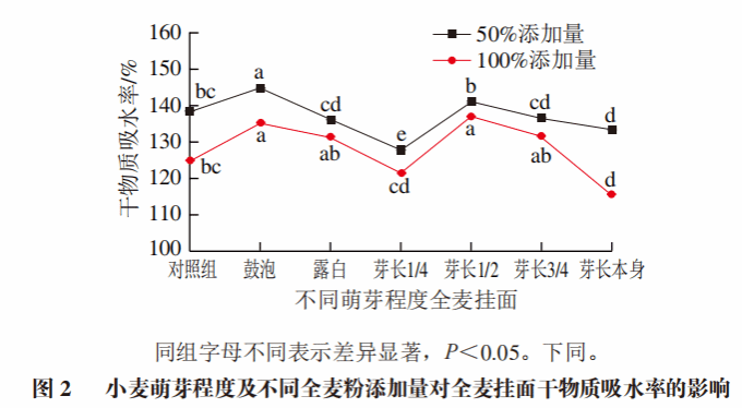 2.1 全麦挂面干物质吸水率