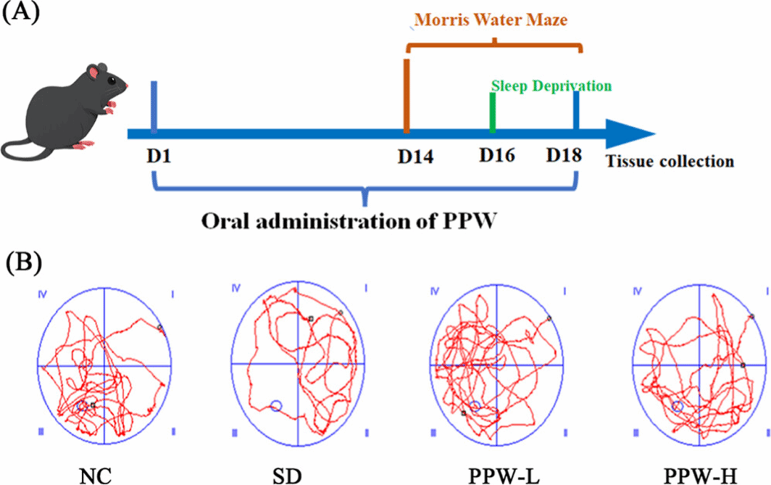 研究进一步构建了睡眠剥夺小鼠模型。行为学测试(Morris水迷宫)显示,连续灌胃PPW 18天后,小鼠在空间学习和记忆表现上显著优于未干预的睡眠剥夺组,且呈现剂量依赖趋势。这一改善并非“表象效应”,而是与海马区生化指标变化高度一致:PPW显著提高抗氧化防御水平、降低脂质过氧化产物,并抑制神经炎症因子释放。
