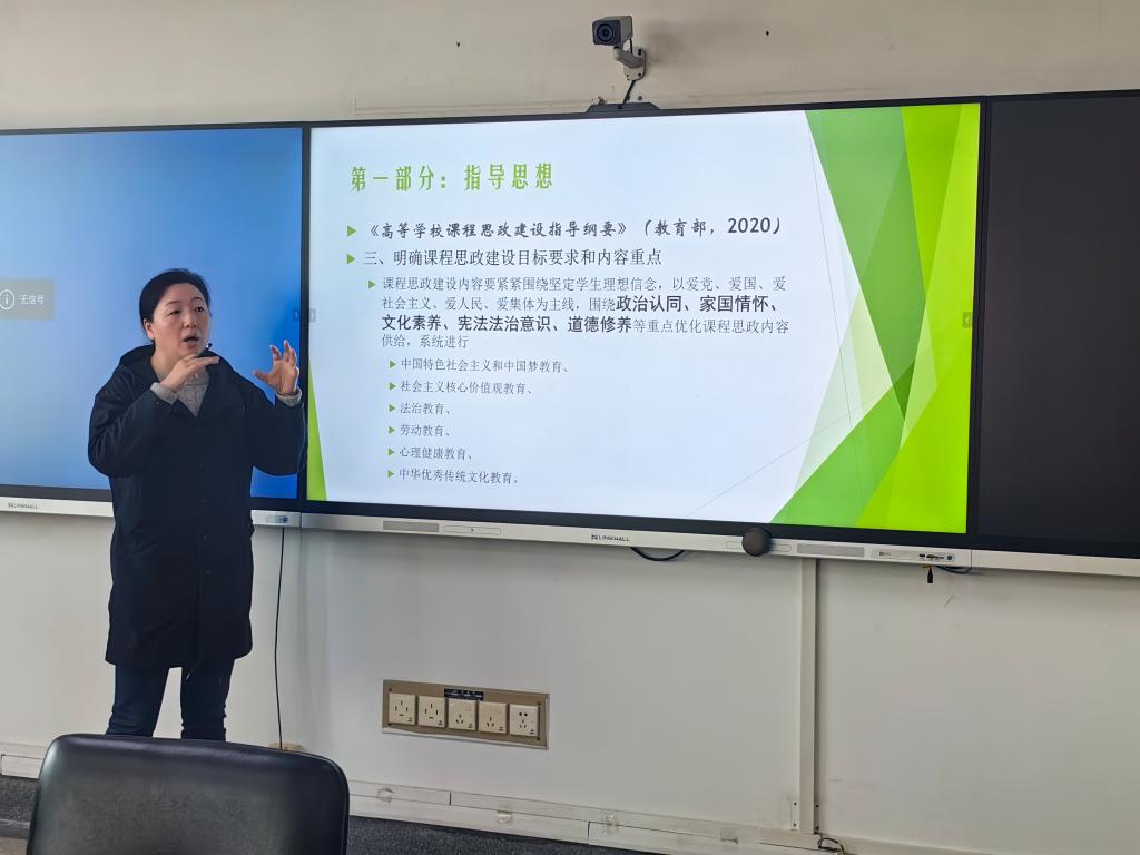会上首先由马克思主义学院杜睿老师向食品学院全体专任教师分享了关于食品类专业课程思政建设方面的思考,从指导思想和课程思政融入专业课两个方面入手,对食品类专业课融入思政元素进行了指导。杜老师指出,全面推进课程思政建设,就是要寓价值观引导于知识传授和能力培养之中,帮助学生塑造正确的世界观、人生观、价值观,这是人才培养的应有之义,更是必备内容。要解决好专业教育和思政教育“两张皮”问题,抓住理工科类课程的特点,通过结合具体案例的方式、深入浅出地将思政元素融入课程教学。