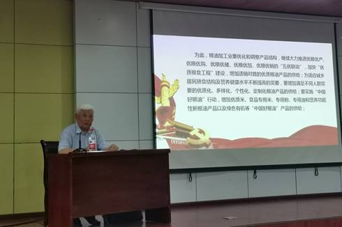 7月15日下午,食品学院研究生党支部于金银湖校区图书馆二楼学术报告厅举行“把党旗插在食品行业人才培养高地上”系列主题活动。此次活动邀请到了中国油脂行业泰斗、中国粮油学会首席专家、油脂分会会长王瑞元先生进行了题为“刻苦钻研,立志早日为中国粮油行业的发展多作贡献”的报告。食品学院党委书记王宏光、食品学院研究生党支部全体党员参加了本次活动。