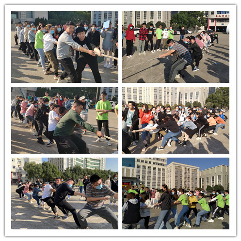 下午三点,随着一声哨响,比赛正式开始。首先进行的是拔河比赛。每支参赛队由1名队长,14名队员组成,比赛采用淘汰制。经过一轮激烈的比拼,场上只剩下了学硕2班和生物医药班在角逐冠亚军。只见场上的队员们一个个脚蹬着地,身体向后倾,嘴里喊着:“一二、一二……”,绳子中间的红绸带一会儿向左、一会儿向右,拉拉队的同学们也在大声喊着“加油”,比赛进入白热化,队员们一个个都瞪红了眼、铆足了劲,为团队获胜顽强拼搏着。最后,学硕2班以绝对优势获得了头筹。