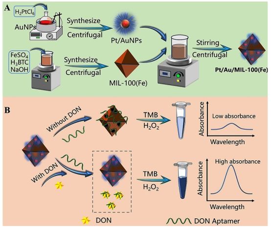 适配体调节Pt/Au/MIL-100(Fe)纳米酶活性的比色法检测谷物中脱氧雪腐镰刀菌烯醇