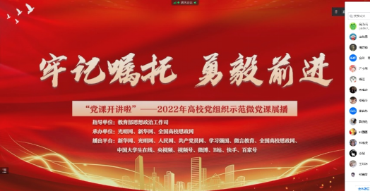此次微党课由北京外国语大学、中国石油大学(北京)、华中农业大学、保定学院等4所高校党委书记和师生代表,围绕学习贯彻习近平总书记考察学校重要讲话和给学校师生的重要回信,讲述高校师生勇担时代使命、服务国家战略、投身强国伟业、贡献青春力量的奋进故事,让青春之花绽放在祖国最需要的地方。