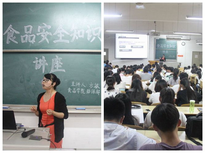本报讯(食品学院 陈适雨)为普及食品安全知识,增强专业认同感,5月11日晚上6点,食品学院食品安全知识讲座在科教201拉开了序幕。本次讲座主讲人为食品学院老师方敏,分团委书记许敏武和全体大一新生参与此次讲座。