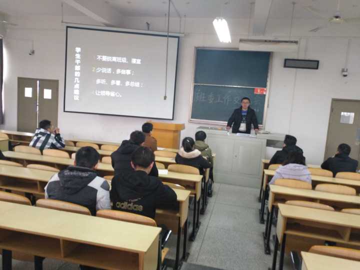本报讯(食品学院 刘慧敏)为了进一步提高学生干部素养,提升大学生思想政治工作水平,12月22日下午,食品16级普本班委在科教301教室举办班干部培训,16级普本辅导员许敏武应邀参加会议,培训由校研究生会主席17级罗中原主讲。
