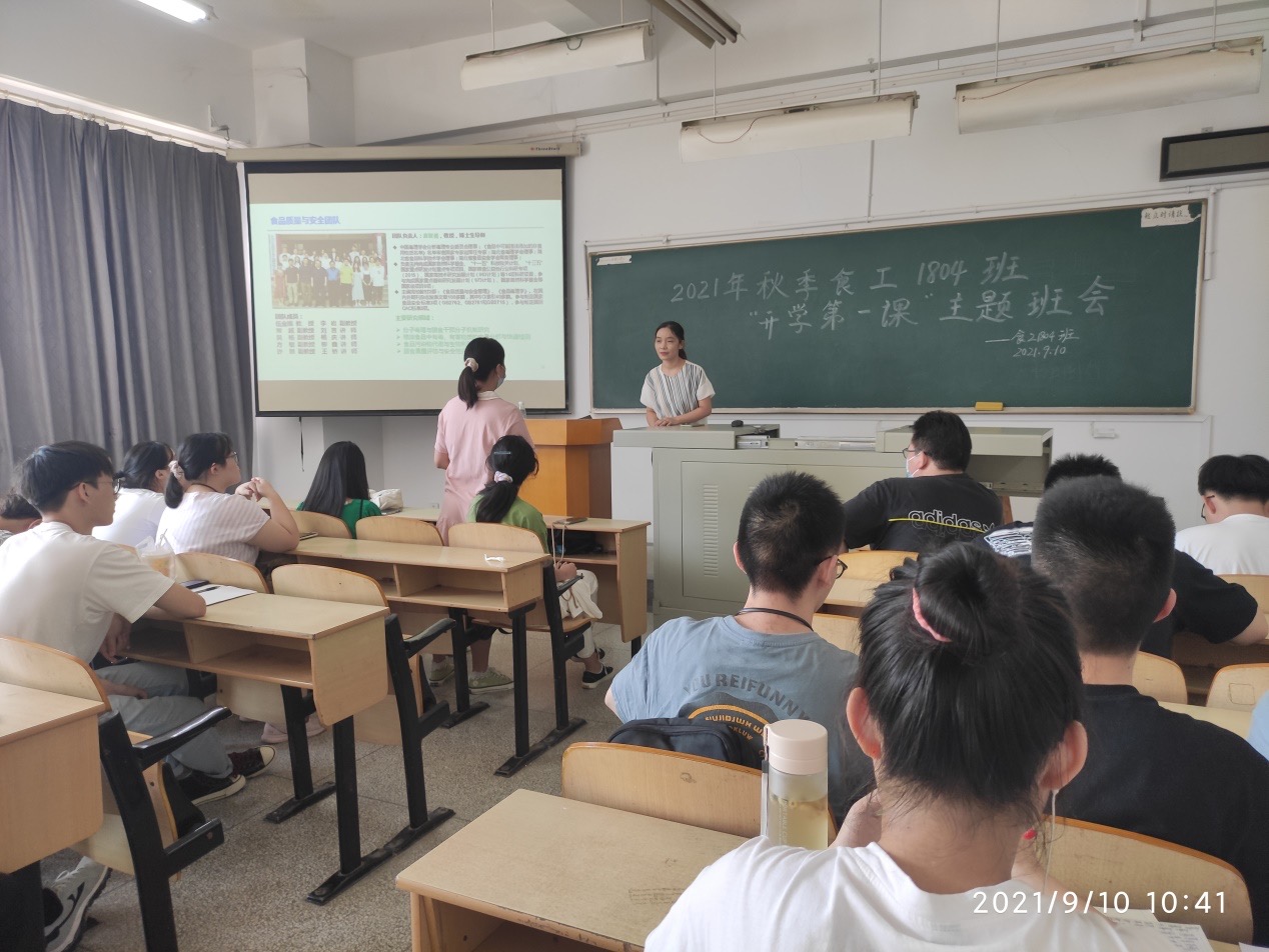 18级学生在这个金秋步入了大四年级,为了在开学伊始做好学生思想政治教育工作,加强开学安全教育,强化疫情防控意识,引导学生正确对待考研、就业压力,近日食品学院18级各班主任在各自班级开展了2021年秋季“开学第一课”主题班会。