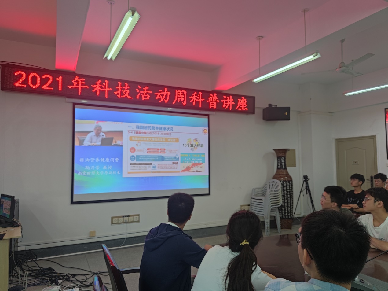 2021年全国粮食和物资储备科技活动周于5月24日上午正式启动,25日上午9点30分,食品学院组织学生在科教809会议室收看本次活动周的科普学术讲座直播。
