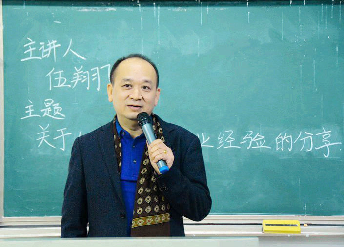 本次活动分为受聘仪式和经验分享两个部分。在受聘仪式上,伍翔飞先生作为一名出色的企业家在青年一代的发展上有着很深的社会责任,我校特聘请伍先生为武汉轻工大学兼职教授,并由王宏光书记和丁文平教授为伍翔飞先生颁发聘书。随后,伍先生以人生职业和事业经验分享为主题,结合自己的亲身经历讲述了自己如何通过一步步的努力,凭借才华和勇气成功创业。伍翔飞先生说:自己在每个阶段都有不同的经历、不同的感想,但有一点一定要牢记,人生的路上有很多节点,一定要勇敢。最后的提问环节里,同学们踊跃提问,伍先生耐心的一一解答,告诉同学们:“年轻,充满希望;年轻,就是未来,要把握好自己的准则,走出属于自己的路。”