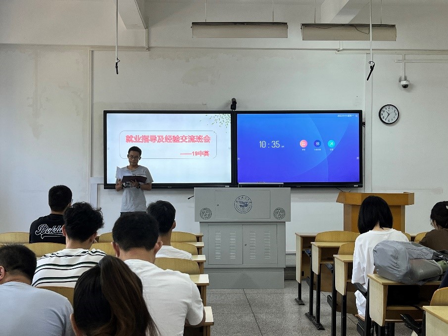 为保障食品学院2023届应届毕业生就业和考研工作顺利进行。本学期初,对毕业年级各班陆续召开了就业考研交流班会,会议由2019级辅导员李山鹏、牟星主持。本次班会对各位同学进行了就业、考研的再动员,从就业、考研、考公考编三个方面为同学们讲解了当前的就业形势,对当前正在冲刺考研的学生们分享了往届毕业生在面临考试压力的应对之举,鼓励大家两条腿走路,做好两手准备,考研复习和校园招聘同步推进;对目前尚未明确就业方向和目标的同学分享了食品行业的就业方向和发展趋势,帮助各位同学分析定位,明确职业发展方向,为将来就业做好准备。