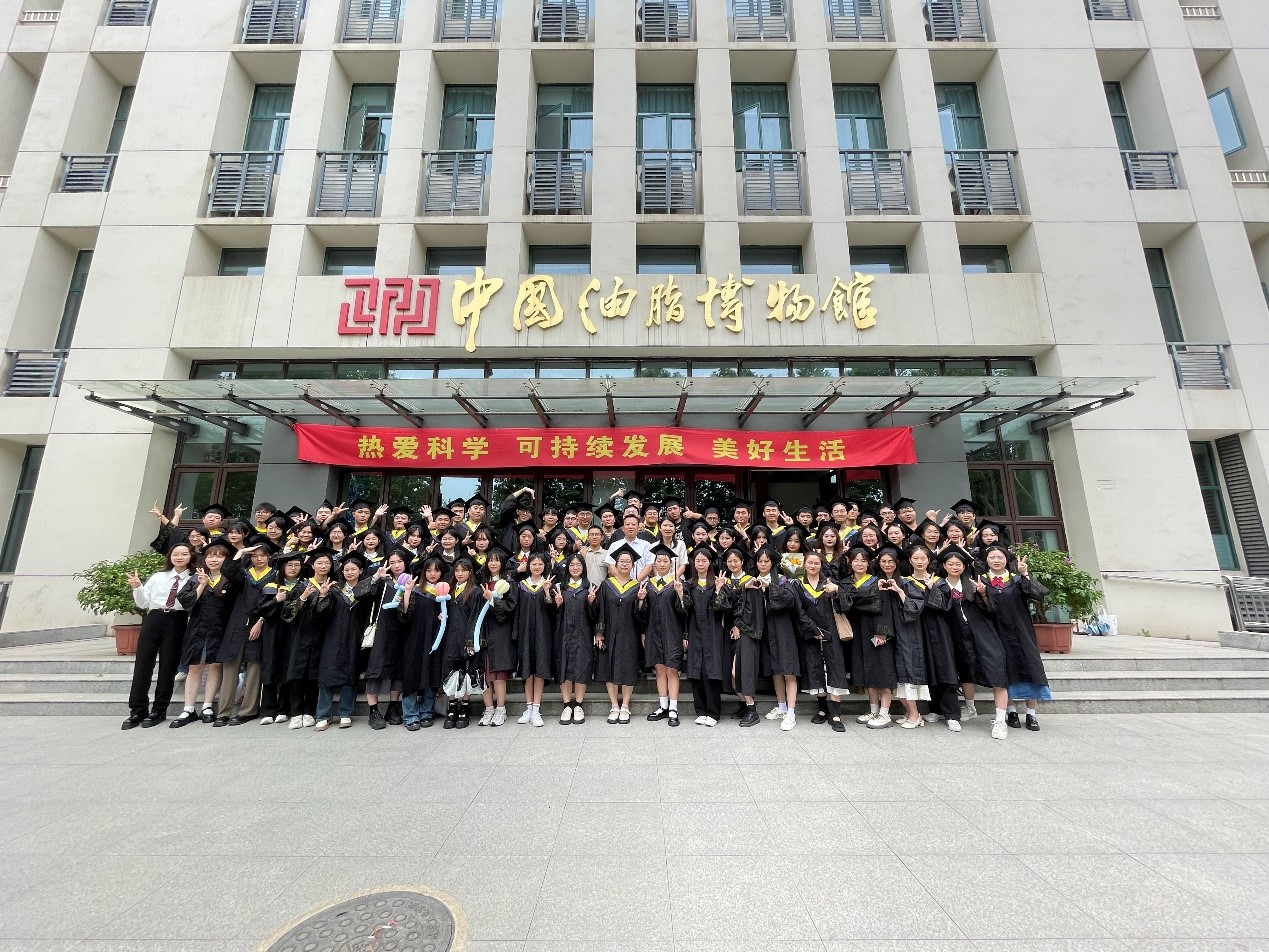 6月16日,食品学院党委为毕业生上“最后一堂课”,参观油脂博物馆,号召毕业生牢记食品学子的使命与重任,以拼搏与汗水彰显青春力量,书写时代篇章,并与毕业生留下了一张具有特殊意义的毕业照。学院党委书记胡中泽、副书记王欣、毕业年级辅导员李山鹏共同参加。