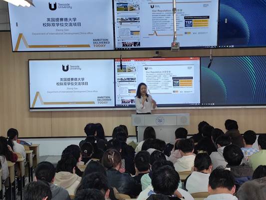 宣讲会上,国际处王处长介绍了中外合作办学项目的相关信息及新政策,高老师向所有学生介绍了提赛德大学的基本信息,向同学们介绍了往届参与项目的部分学长学姐所取得的佳绩。另外,她还介绍了中外合作项目的优点及入学条件,还有留学所需的相关费用,向同学们展示了提赛德大学的地理环境和校内设施社团的条件。