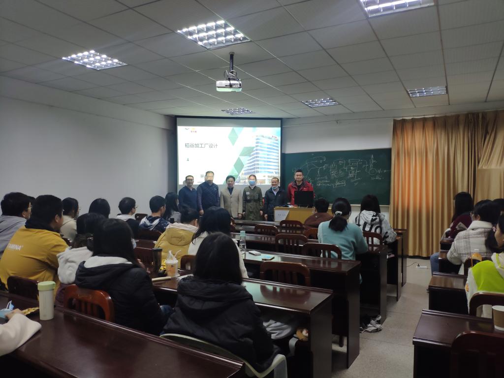 2020年11月21日上午,应食品学院邀请,益海嘉里金龙鱼粮油食品股份有限公司高管及专家李春雷、刘冠、王二明、马可、沈涵等到我校常青校区KJ802教室开展“稻米加工厂毕业设计”的授课活动。我校食品学院党委书记王宏光书记、副院长沈汪洋教授及2016级粮食工程专业学生参与了此次活动。