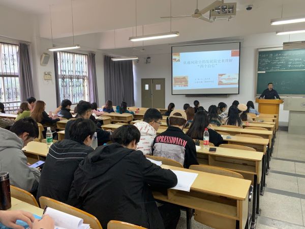 11月22日,在KJ201教室,中英食品17级所有学生和任课教师沈汪洋一起深入探讨了《从通风除尘的发展简史来理解“四个自信”》的专题。